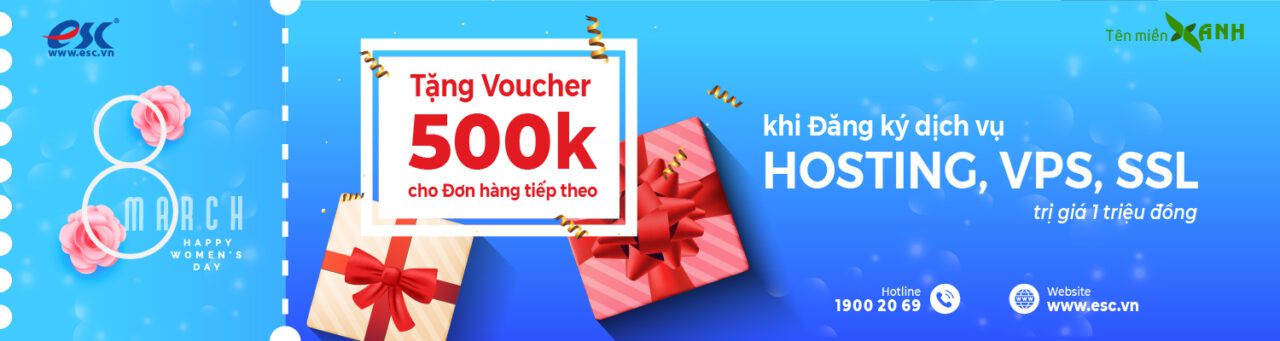 - Tặng ngay voucher 500.000 đồng cho đơn hàng tiếp theo khi khách hàng nữ đăng ký dịch vụ hosting, VPS hoặc SSL trị giá 1 triệu đồng trong ngày 8/3.